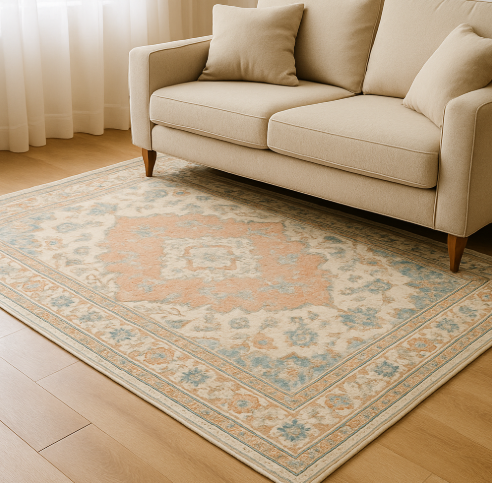북유럽 스타일은 따뜻한 베이지 톤이나 아이보리 색상의 부드러운 러그가 자주 사용돼요. 보통 울이나 면 소재가 많고, 밋밋하지 않도록 직조감 있는 제품들이 많아요. 이 스타일은 자연광과도 잘 어우러지기 때문에, 햇살 드는 거실이나 침실에서 빛을 발하죠.
