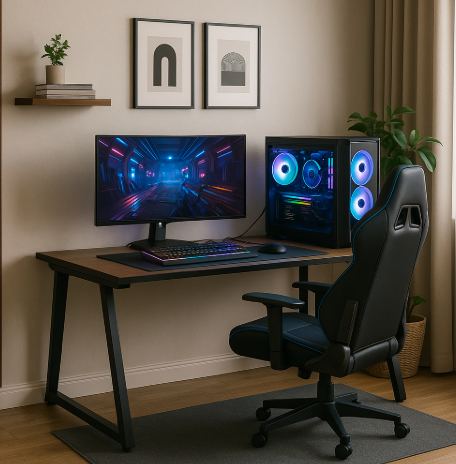 또한, ‘조용한 감성 게이밍’이 떠오르고 있어요. RGB 조명이 아닌, 은은한 무드 조명과 차분한 블랙·우드톤 디자인이 대세예요. 화려함보단 안정감 있는 분위기로, 게임 외에도 재택근무나 영상 편집 등에 활용 가능한 다목적 데스크가 많아졌어요.