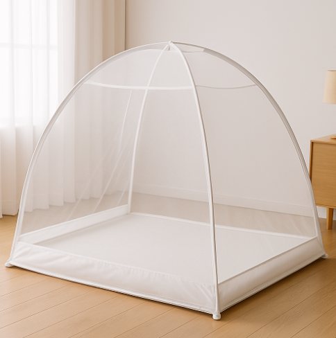 텐트형 모기장은 휴대성과 설치가 쉬워 야외 활동이나 캠핑 시 유용해요. 접이식 구조로 공간 차지도 적고, 아이들이 놀거나 쉴 때도 안전한 공간을 만들어줘요.