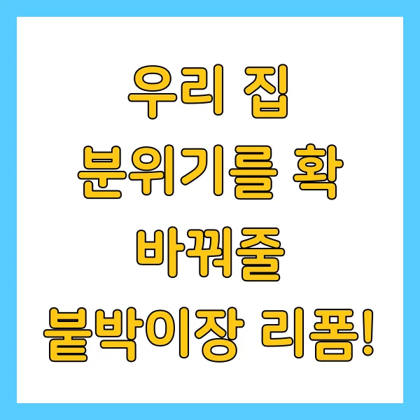 - 내용: 기존 붙박이장의 문짝만 새로운 디자인이나 소재의 문짝으로 교체하는 방식이에요. 붙박이장 전체를 바꾸는 것보다 훨씬 저렴하면서도 확연한 변화를 줄 수 있죠!