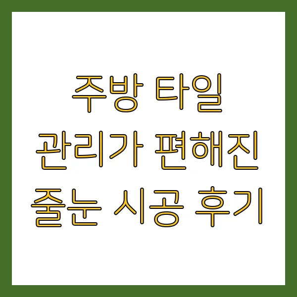 줄눈은 단순히 타일 사이를 메우는 역할을 하는 게 아니라, 💦 습기와 오염 물질이 침투하는 것을 막아주는 중요한 역할을 한다고 해요. 줄눈 시공을 통해 곰팡이 번식을 억제하고, 깨끗한 주방 환경을 유지 할 수 있어서 정말 만족스러워요.
