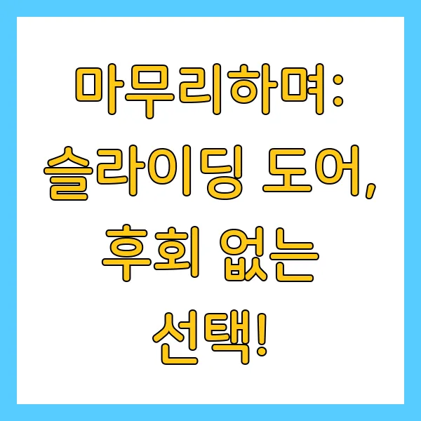 혹시 슬라이딩 도어 설치를 고민하고 있다면, 저의 후기가 조금이나마 도움이 되었으면 좋겠네요. 꼼꼼하게 알아보시고, 신중하게 선택해서 후회 없는 결정하시길 바랄게요! 😉