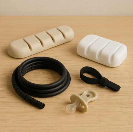 ① 케이블 클립 책상 위에 고정해서 충전선이나 이어폰 줄을 정리하는 데 좋아요. 양면테이프나 자석으로 부착되며, 선이 바닥으로 떨어지지 않게 고정해줘요. 자주 뺐다 꽂는 USB나 충전기에 특히 유용하답니다.