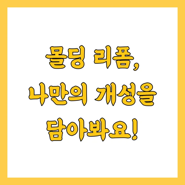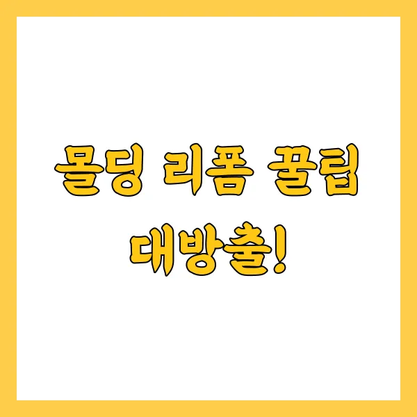 - 전문가 도움 : 만약 몰딩 리폼이 너무 어렵게 느껴진다면 전문가의 도움을 받는 것도 좋은 방법이에요. 전문가에게 맡기면 시간과 노력을 절약할 수 있을 뿐만 아니라 더욱 완벽한 결과물을 얻을 수 있답니다.