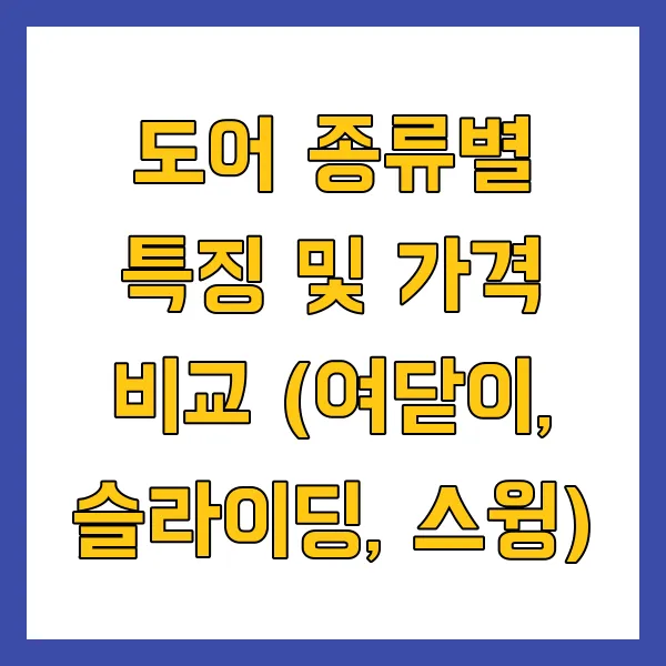 도어 종류별 특징 및 가격 비교 (여닫이, 슬라이딩, 스윙)