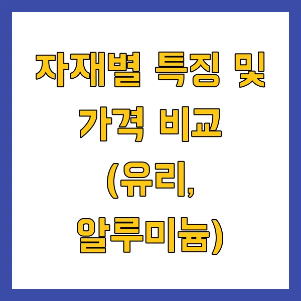 자재별 특징 및 가격 비교 (유리, 알루미늄)